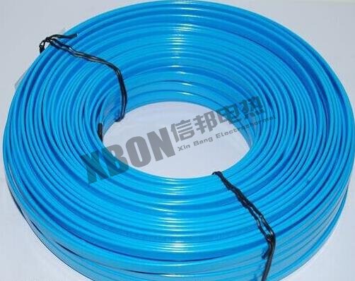 “XBon”自控溫油井拌熱電纜電加熱裝置,是自控溫油井拌熱電纜通電后、沿管線方向,隨著井深的溫度梯度逆向自動調整輸出功率。通過油管外壁向油管內供熱,沿線向維持一定恒溫,以達到降粘、解錯、增加泵效之效果。其核心是伴熱電纜內三組PTC發(fā)熱芯帶是由導電高分子聚合物PTC功能材料,經(jīng)擠出輻射加工制成,每一點皆能隨被加熱體系溫度的變化其輸出功率逆向隨之變化,以達到自動補償、自動調整、自動控制之功效。